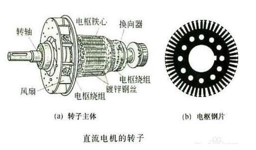 轉(zhuǎn)子部分的電樞鐵芯是主磁路的組成部分,電樞繞組由一定數(shù)目的電樞線圈按照一定的規(guī)律鏈接組成,是直流電機(jī)的電路部分,產(chǎn)生感生電動(dòng)勢,進(jìn)行機(jī)電能量的轉(zhuǎn)換。而換向器主在直流發(fā)電機(jī)中主要起整流的作用,而在電動(dòng)機(jī)中起的是逆變作用。
