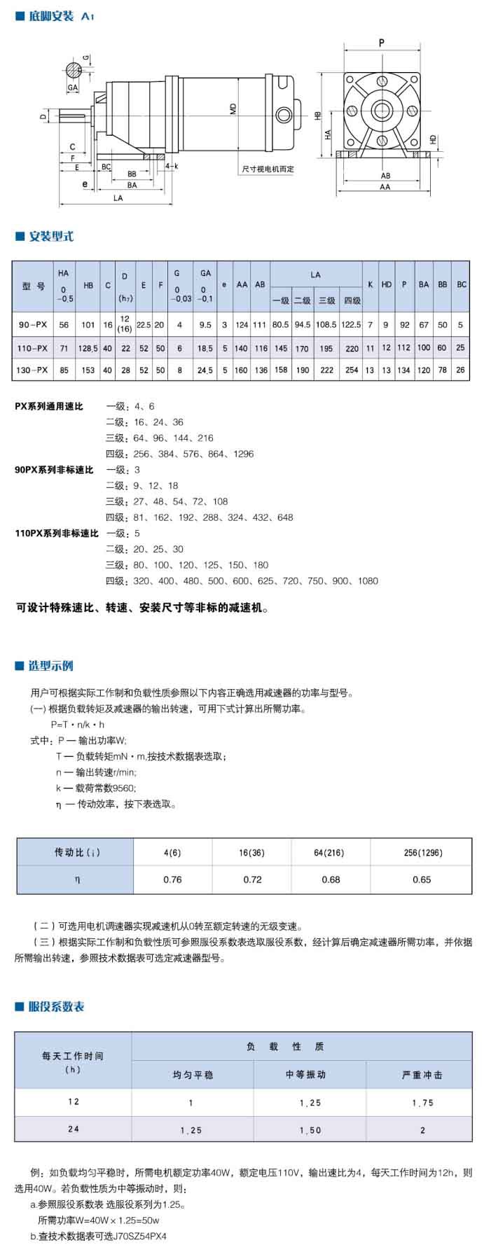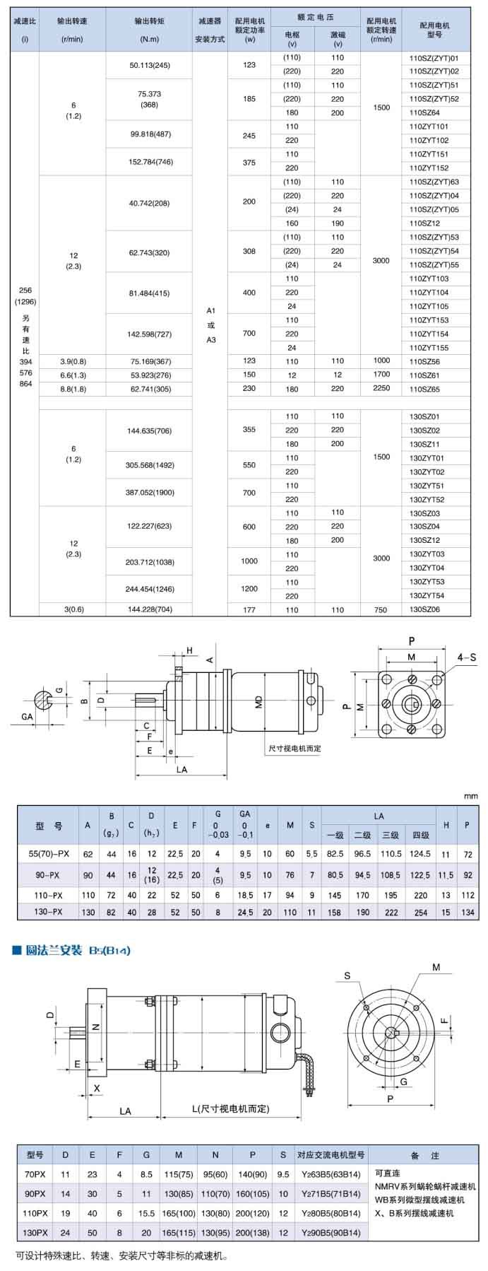 PX系列也可直連蝸輪減速器、擺線針輪減速器,組成不同速比或大速比的減速機(jī)。